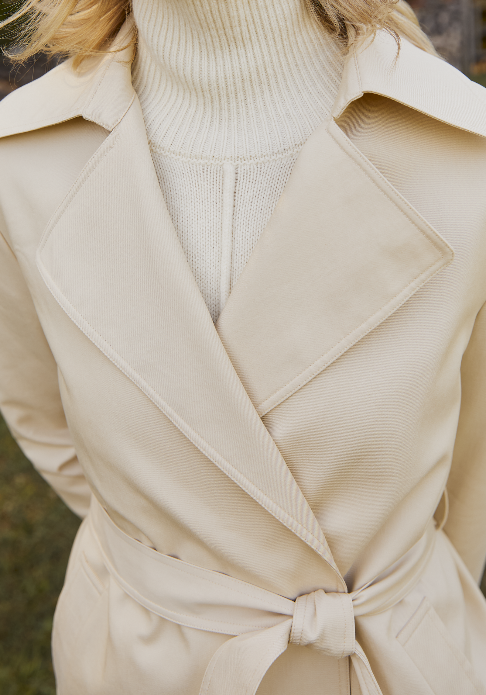 The clean and chic design of the Gale Trench Coat is highlighted by its simple, classic silhouette. The adjustable belt ensures a tailored fit, while the soft neutral hue adds versatility and understated elegance. Don’t miss this timeless staple piece.