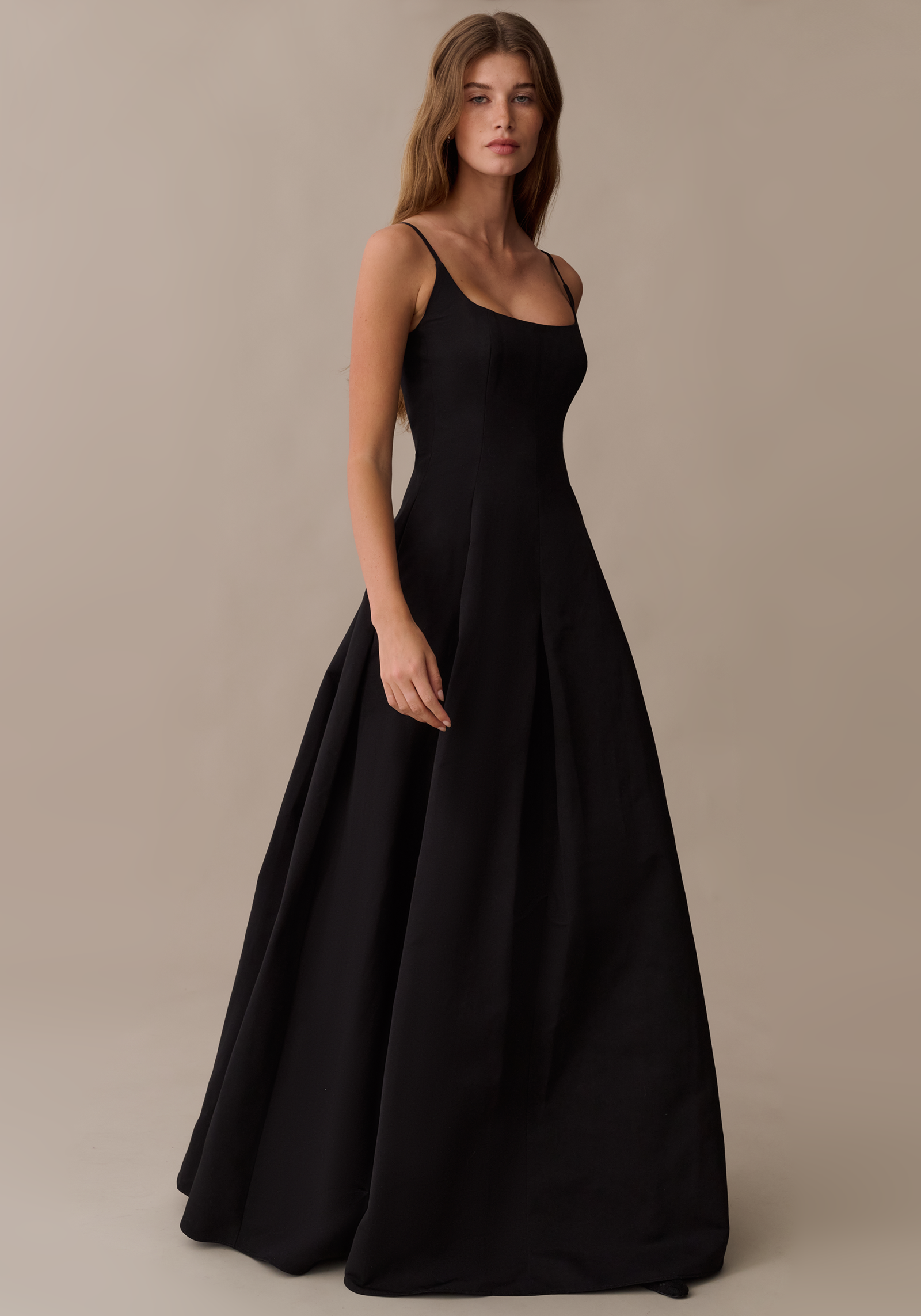 The Ziva Dress combines a fitted, structured bodice with a generous full skirt for a beautifully balanced silhouette. Paneled construction adds subtle shaping and visual interest while keeping the design understated. Clean lines and thoughtful tailoring make this dress a timeless option for all special occasions.